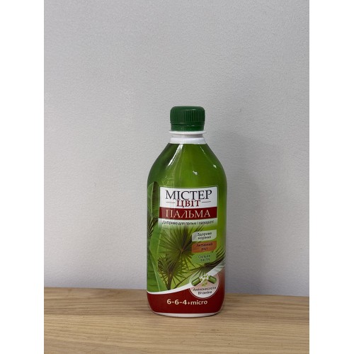 Містер Цвіт «Пальма» — спеціальне рідке добриво для пальм і папоротей, що забезпечує активний ріст, міцне листя та здорову кореневу систему. Завдяки збалансованому складу (6–6–4 + мікроелементи), вітамінам і амінокислотам рослини отримують повноцінне живлення, стають стійкішими до стресів і зберігають насичений зелений колір. Ідеальне для регулярного догляду за декоративно-листяними рослинами.